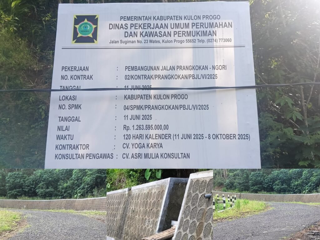 Pembangunan yang seharusnya meningkatkan akses warga justru dikeluhkan karena kondisi lapangan menunjukkan banyak material agregat terbawa arus air hujan.Proyek yang dibiayai APBD Kulonprogo Tahun Anggaran 2025 ini memiliki nilai kontrak Rp1.263.595.000.